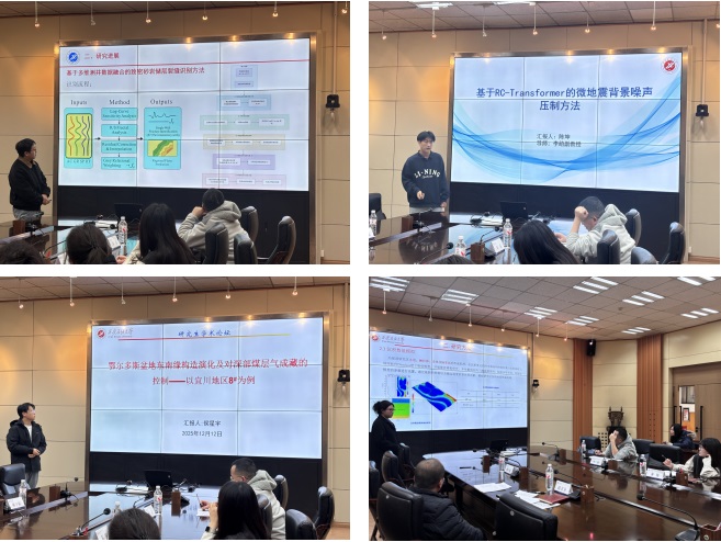 报告环节,7名同学依次作学术报告,围绕地球科学与工程领域的前沿课题、研究方法及实践成果展开深入分享,同学们通过详实的数据、严谨的论证和生动的PPT演示,清晰呈现了各自的研究思路与学术成果,展现出了扎实的专业功底和良好的学术素养。
